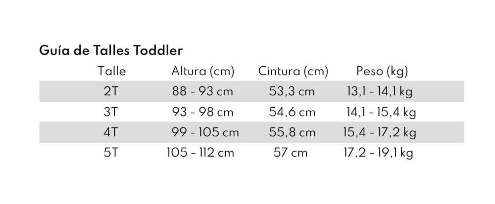 A partir de los 2 años las prendas se tallan por altura y medidas del cuerpo. Tomá la altura actualizada de tu hijo para acertar mejor.